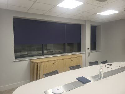 When serious business decisions are being made the environment needs to project absolute focus and professionalism. For the boardroom office, the common challenge was ensuring privacy and eliminating screen glare during critical meetings without sacrificing the room’s sense of corporate style. That’s why we opted for a commanding, custom-fit blue roller blind, a colour traditionally associated with reliability and intelligence, perfectly suited for a leading Irish brand. This streamlined solution helps create a feeling of unwavering authority and concentrated efficiency, embodying the true spirit of success.