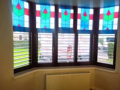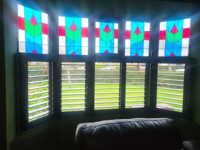 The Perfect Pairing: Stained Glass & Café Style Shutters in Whitehall