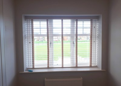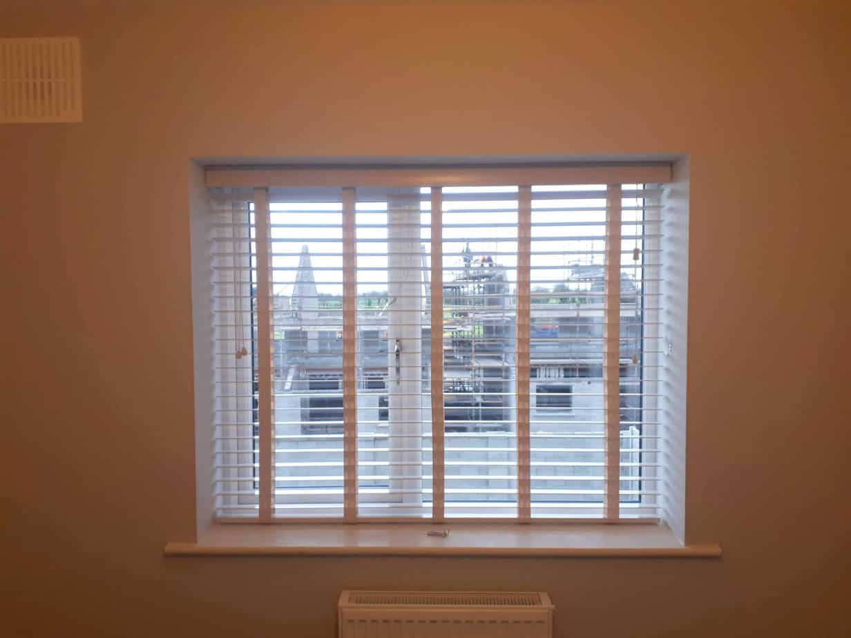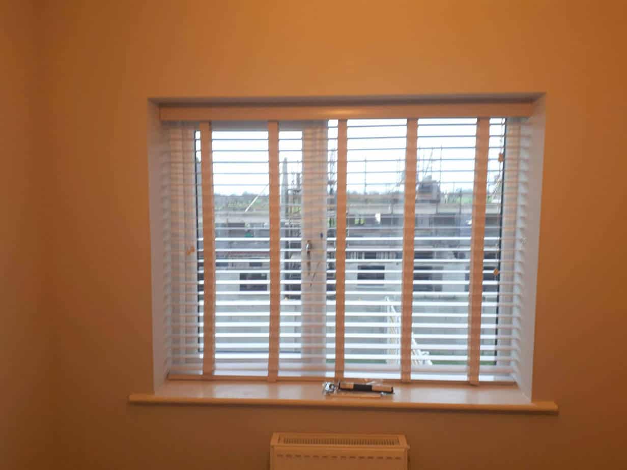 Blinds installed in Ratoath, Meath. You can see 4 different types of blinds which are all designed to do the same thing. Pleated blinds work great on doors because of how close to the frame of the window they are installed. Roller blinds on kitchen window looks well and is easy to use and reach because of the chain which opens and closes the blinds. Velux blinds are blackout because what you really want in a bedroom is no light waking you up in the morning. Wooden Venetian Blinds with tapes look great at the front of the house and can give you all the privacy you need.