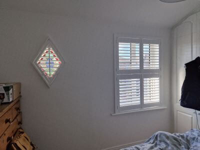 We love a beautiful architectural detail, and while a diamond is typically a girl’s best friend, it’s definitely not when that small diamond window lets light stream in and ruins your much-needed sleep! The definitive solution that is both stylish and effective is pure white, central tilt wooden shutters. These are custom made to flawlessly match the intricate angles of your diamond shape, creating a seal that eliminates the light leaking gaps you would get with any off the shelf covering. With the easy-to-use central tilt control, you can effortlessly close the louvres for complete darkness, letting the elegant pure white finish add a layer of calm and sophistication to your room, finally making your sleep worth it.