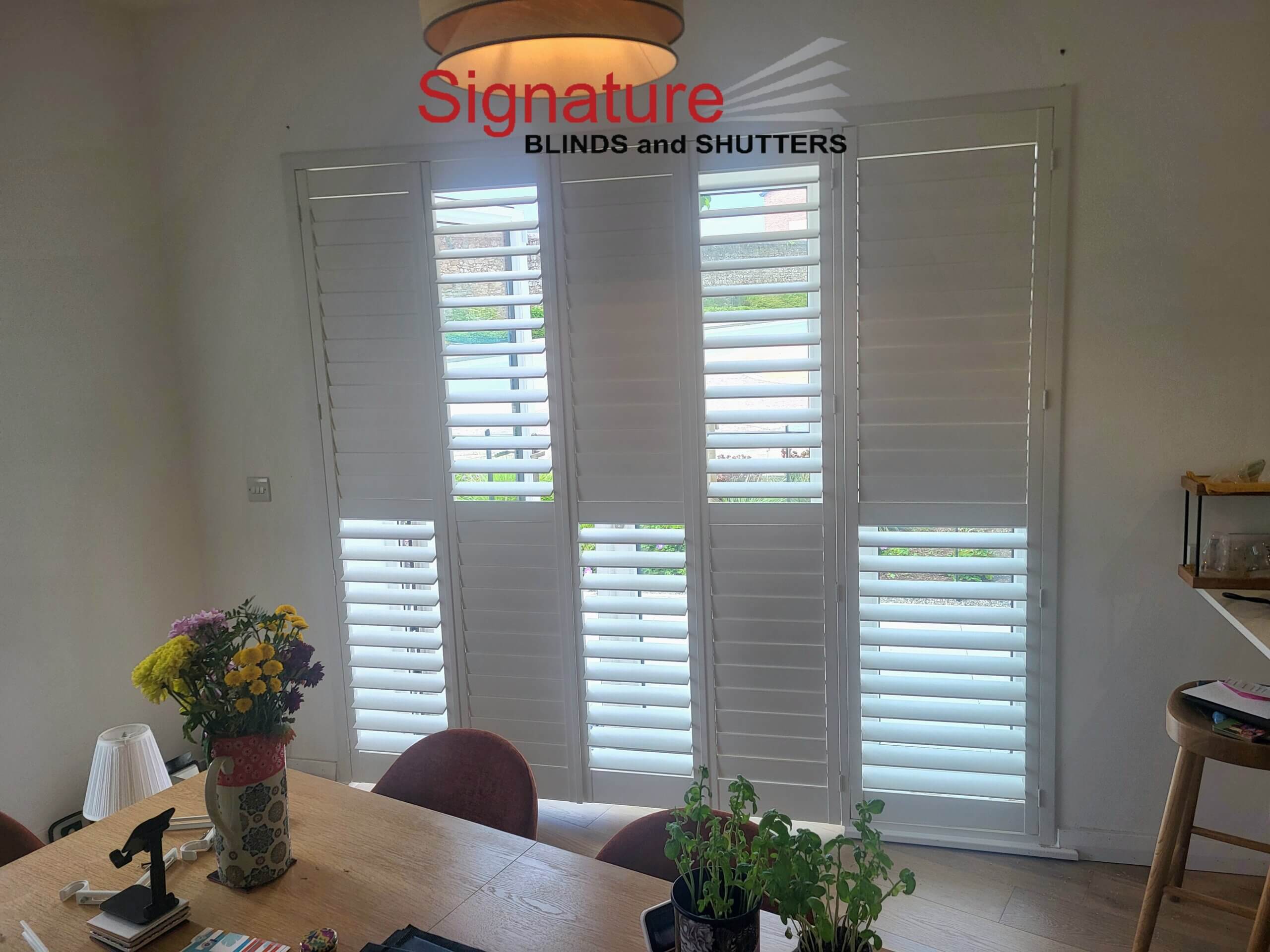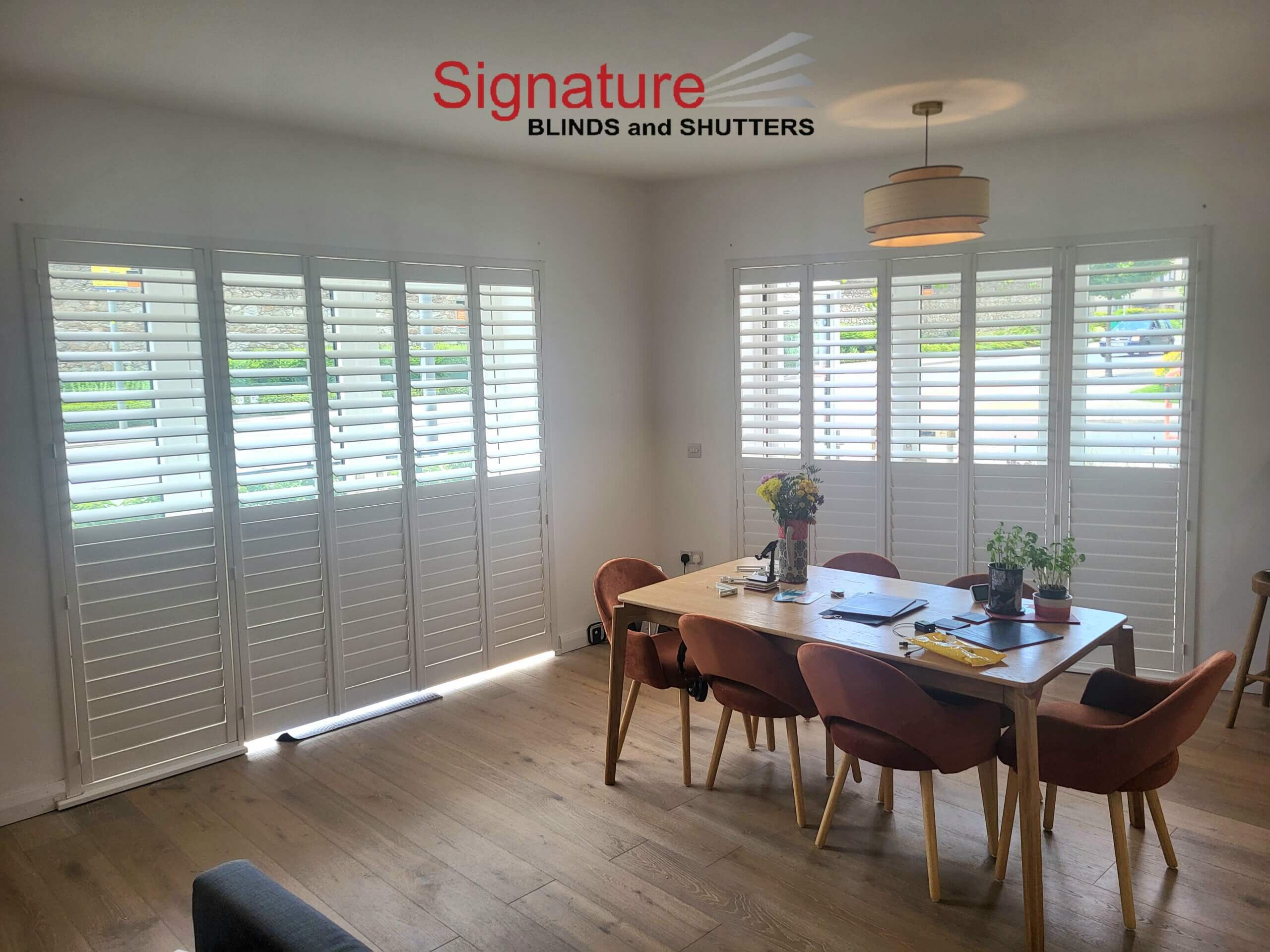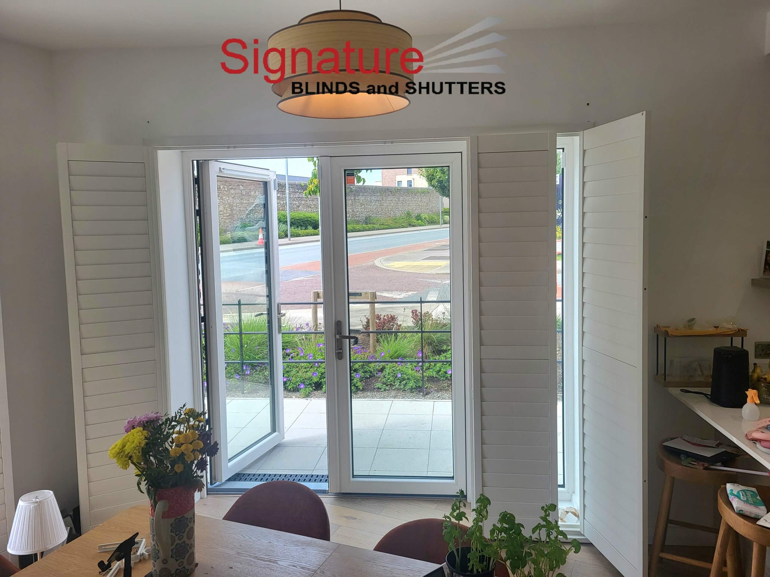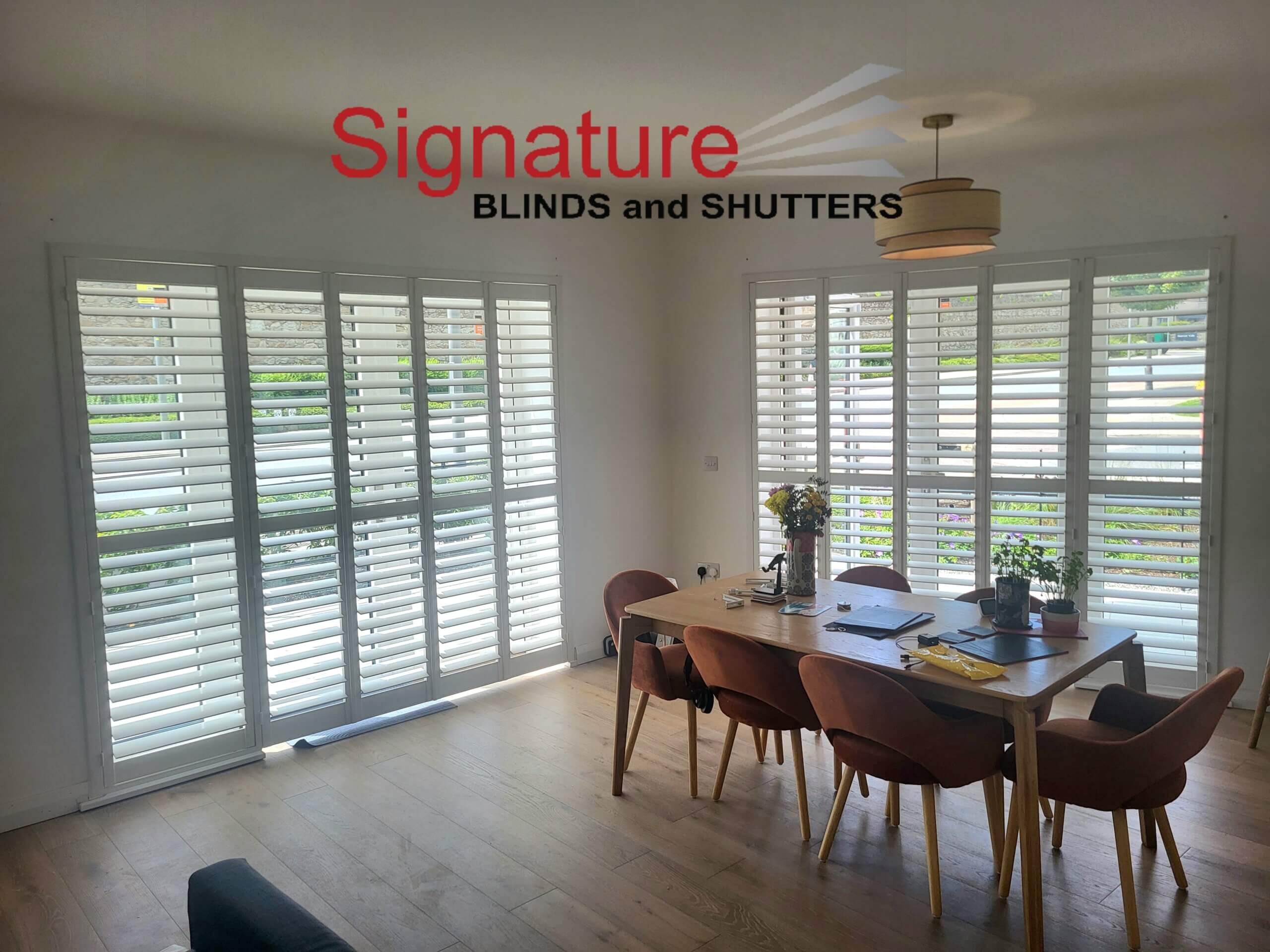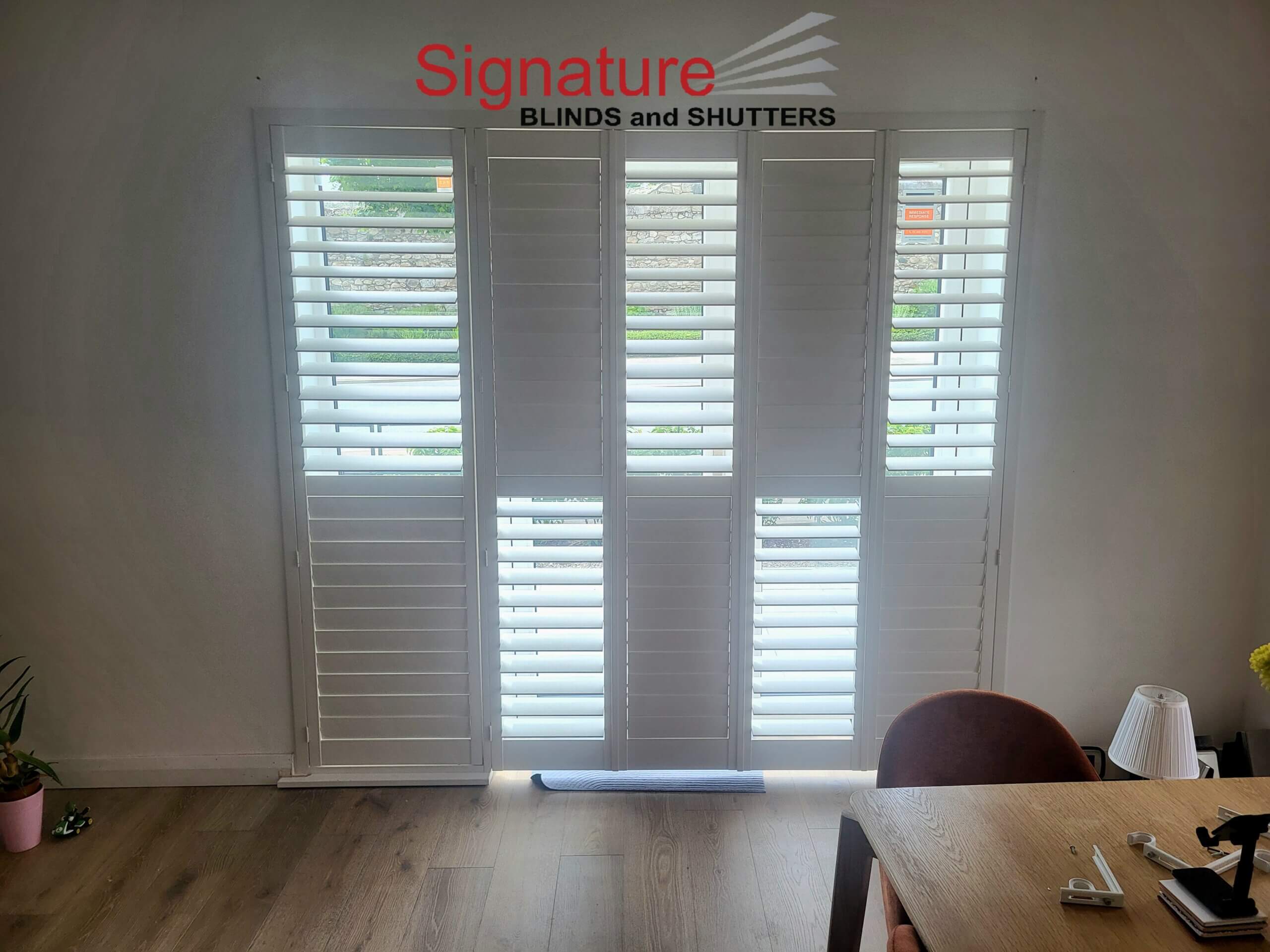 #SignatureBlinds #Cherrywood #ShutterDoors #LivingRoomShutters #89mmLouvres #SplitTilt #DividerRail #OffWhiteShutters #LargeGlazing #DoorShutters #MadeToMeasure #ShuttersIreland #DublinHomes #LightControl #5StarService #SupportLocal