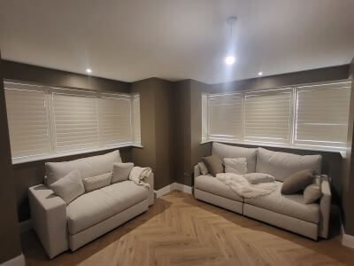 Imagine walking into your own living room and feeling instantly enveloped in an oasis of peace, tranquility and cosiness, with the cold Irish wind completely sealed out! A common challenge for many style conscious Dublin homeowners is finding a window solution that not only keeps drafts at bay but also perfectly complements the existing colour scheme right down to the flooring. Our custom shutters were the perfect solution not only expertly colour matched to the Tallaght client’s palette and floor tones but also providing a robust insulating layer against the chilly weather. This successful project proves you can easily transform your main living area into a snug, beautifully coordinated sanctuary, creating a feeling of unmatched calm and timeless elegance.