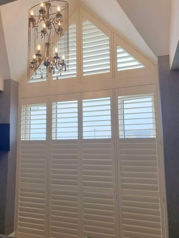 Large Apex Shutter installed in Blackrock, Co Louth. This apex shutter is made from natural wood. It’s very durable, stylish and very practical. Shutters when closed can make the room very dark and when opened they can really help you brighten the room up and make it look bigger. All the panels can open if need to be. Louvres at the top can be opened while having the ones at the bottom closed. This helps with keeping your privacy but also letting light in.