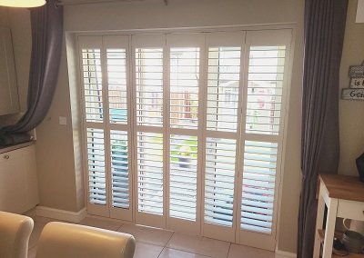 Plantation Shutters in Navan, Wooden shutters on Meath. Our wooden shutters are made from strong and durable solidwood. They are also light so they are the perfect solution for doors. Bi-folding doors are an ideal solution for back doors because they will take up less room when folded.