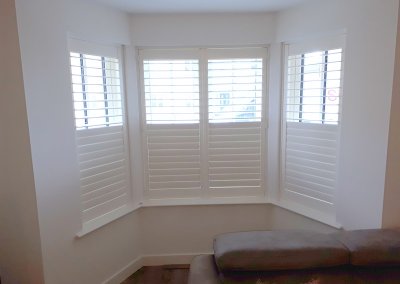 Shutters we have fitted in Portmarnock, Dublin North. Shutters are what we specialize in. Some companies might not want to pursue the challenge of such shutters but we relish these types of challenges. We will fit it perfectly. You will be able to block out all the light during the day and night. There is a hidden tilt in these shutters. This means that there is no tilt rod, instead you just push one louvre and all of them within that shutter will do the same. There is also a split half way which means that the top half of the shutter is independent of the bottom half of the shutter. So you can have the louvres in the top half open and closed at the bottom. These shutters when fully closed can help keep your house warm during these upcoming cold months so you will be able to save a bit of money on your heating bills.