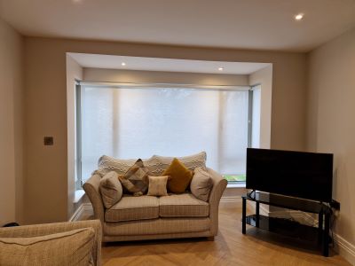 Would you like to give your bay window a sleek look, look no futher than our custom roller blinds which are perfectly fitted and are finished with a high-quality, durable nickel chain for effortless operation. This smooth chain mechanism makes raising and lowering the blind a pure pleasure, avoiding the fuss of old cords and instantly adding a lovely feeling of substance and style. This small detail elevates the simple roller blind, transforming your window into a neat, elegant feature without sacrificing daylight or space.