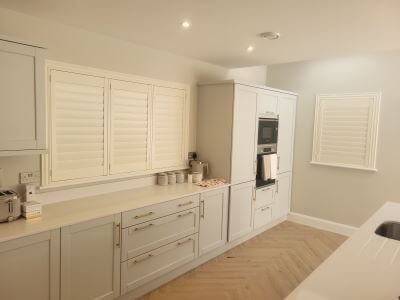 We recently fitted stunning pearl white shutters in a home out in Tallaght and we were truly blown away by the result, the kitchen now looks less like a busy cooking space and more like a high end showroom. A common challenge in Dublin homes is updating a tired kitchen to reflect modern design trends without a full expensive remodel. Our custom pearl white shutters are the perfect solution, delivering immediate and stylish new look that is both clean and incredibly sophisticated. This fantastic installation proves you can easily transform your kitchen into a space that gives you a feeling of unmatched style and truly feels like a bespoke luxury room.