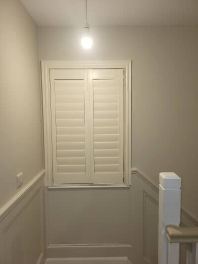 Are you finding it difficult to choose blinds for your landing window that truly complement the stylish wall panelling you already have in your Dublin home? It’s a common challenge—standard blinds rarely offer the clean, architectural lines needed to harmonise with bespoke interior carpentry. Look no further: we have the best solution with our custom-fit pearl white wooden shutters featuring the elegant Crown Z-Frame. Installing this specific combination delivers an integrated, finished look that ties your entire hall and landing together, instantly creating a feeling of unmatched style and coherence in your entrance space.