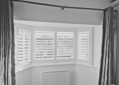 Weston Shutters fitted in Artane. Home Shutters in Dublin. 89 mm louvers are the most popular size louvers chosen by customers. The hidden tilt option is also very popular. This option allows you to control the light very well. Our shutters can be made to almost any size. Porthole window shutter you can see in the pictures is fitted within the recess and shutters are one of the only options you can get for that shape of a window.